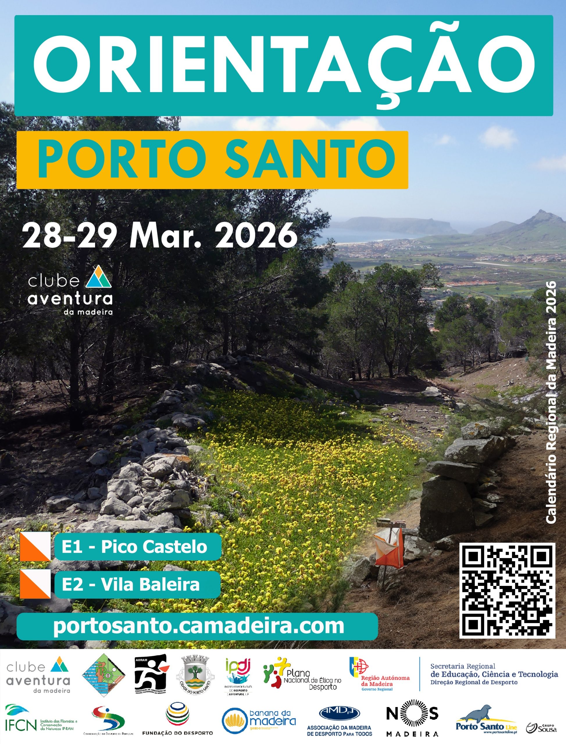 O Clube Aventura da Madeira está a organizar  o evento “Orientação Porto Santo”, agendado para os dias 28 e 29 de março de 2026, com uma etapa de floresta no Pico Castelo  e uma etapa em ambiente urbano, na cidade Vila Baleira.